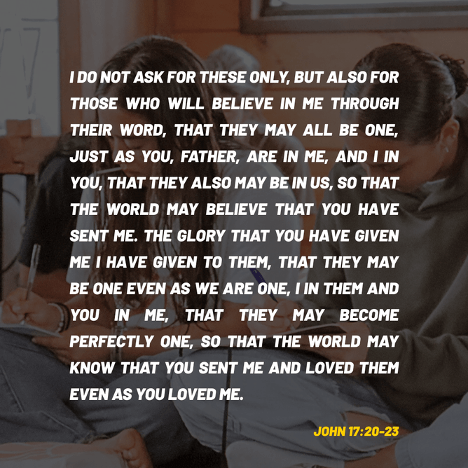 To see the vision achieved, the quality and quantity of our partnerships must increase. These partnerships span right across the national Church, from individuals to trusts and from a single youth leader to entire denominations. It is only through a united Church effort that we can reach every young person in our nation, and it is only through prayer that this unity can take place. I consider the words of Jesus' prayer for the Church in John 17.